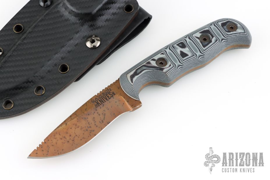 In 1973, Barry Dawson built his first knife shop inside a dilapidated barn. Fresh off a stint in Vietnam and flat broke, he built most of his machinery himself out of parts scavenged from the local landfill. What he didn't know, he learned, and what didn't exist yet, he invented. More than 40 years later Dawson Knives has grown to encompass three generations of knifemakers, all working together out of our shop in Prescott Valley, Arizona. Each of our knives and swords is 100% designed and handcrafted by us in the USA. We handle every aspect of the knifemaking process in-house, from cutout and grinding to heat-treat, finishes, sheaths and sharpening. We're constantly researching new and better knifemaking methods and the latest advances in materials to ensure we deliver you the best custom knife available.