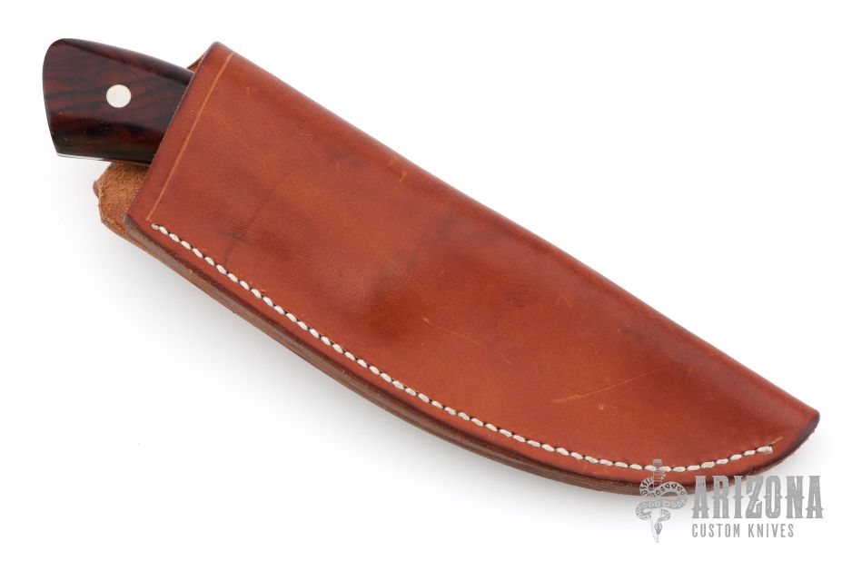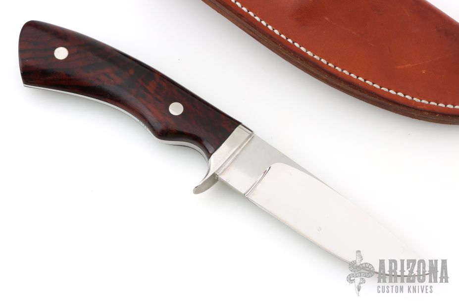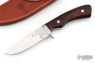 "I have been a knife maker since 1983. I got my start watching George Herron in his shop. He has always been a mentor, answering all of my questions and helping with the little problems of knifemaking. Most of my work is geared toward hunters. Since the most important part of the hunt is not the gun, no matter how much it costs, but a knife that will get the job done comfortably and quickly. I also build a few boots and fighters. All blades are ATS-34 that are professionally heat-treated to a Rockwell 59. All guards, bolsters, and pins are 303 Stainless. All knives are serial numbered. The sheaths are pouch type and are wet-formed to fit each knife."