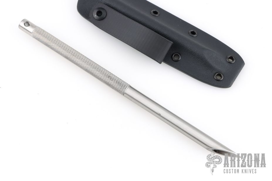 This Survival Straw by Crawford Knives features a 8" knurled stainless steel straw with very sharp tip. Comes with kydex sheath and ball chain. New from maker!