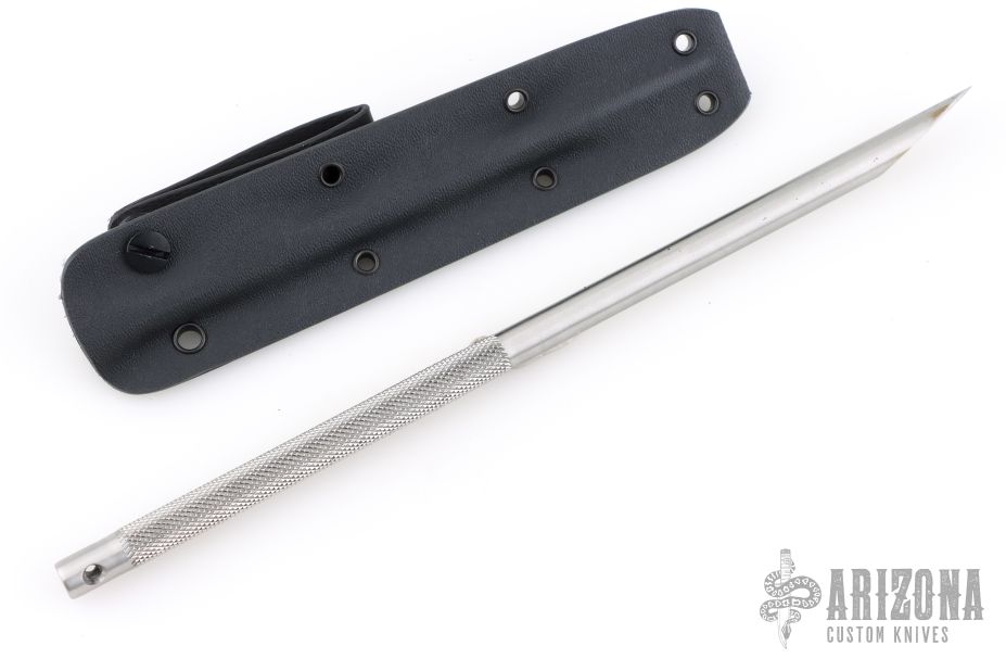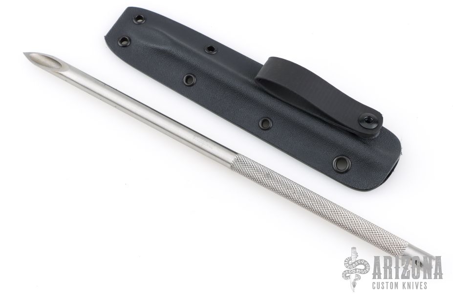 This Survival Straw by Crawford Knives features a 10" knurled stainless steel straw with very sharp tip. Comes with kydex sheath and ball chain. New from maker.