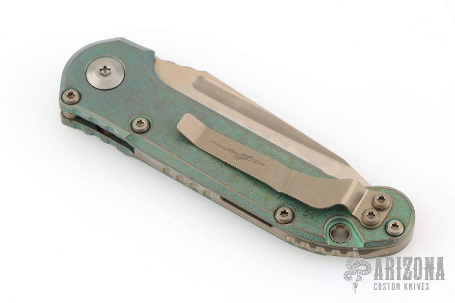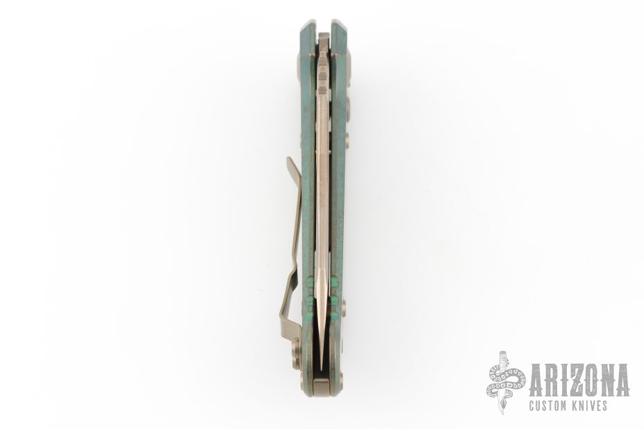 1136-15MS2 LUDT T/E Full Serrated Marfione Select Bronzed Stonewash Antique Green Anodized Slabs Ti W/ Bronze Ti Accent