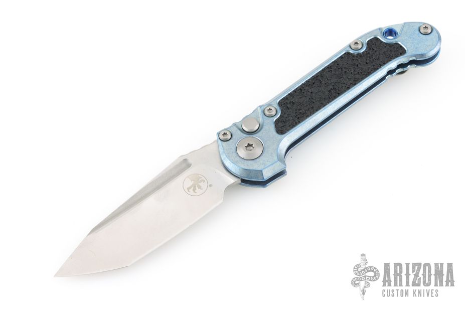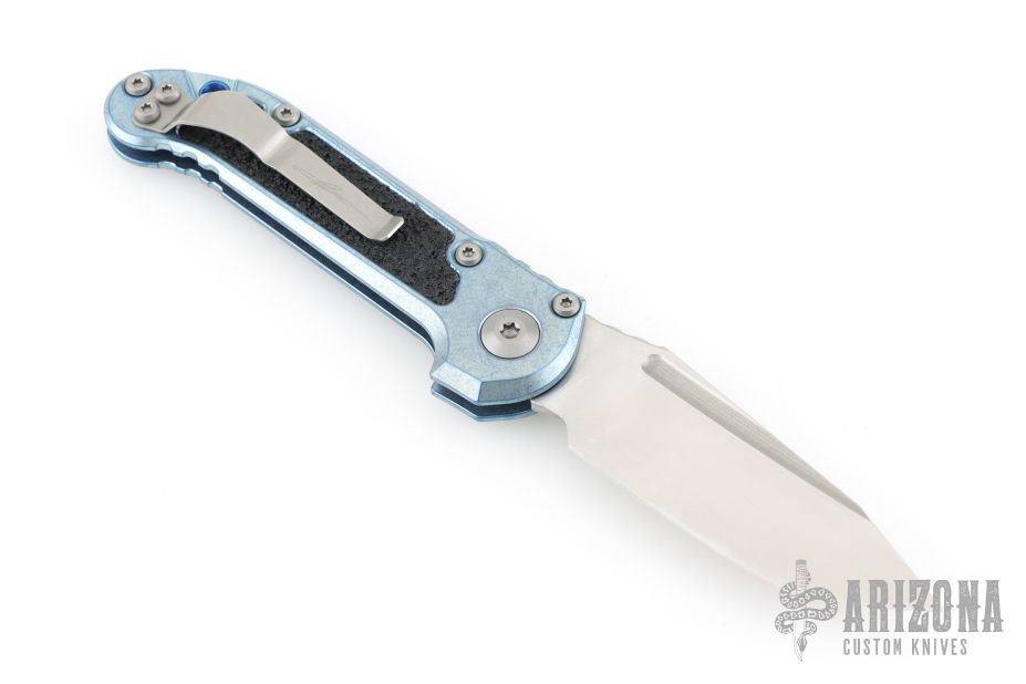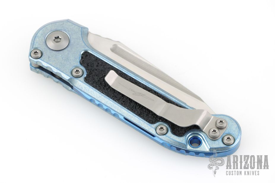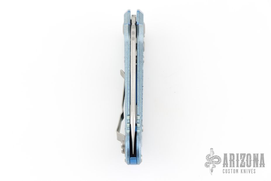 1136-10MS12 LUDT T/E Marfione Select Stonewash Finish Ice Blue Anodized Ti w/ Textured Inlay & Blue Ti Accent