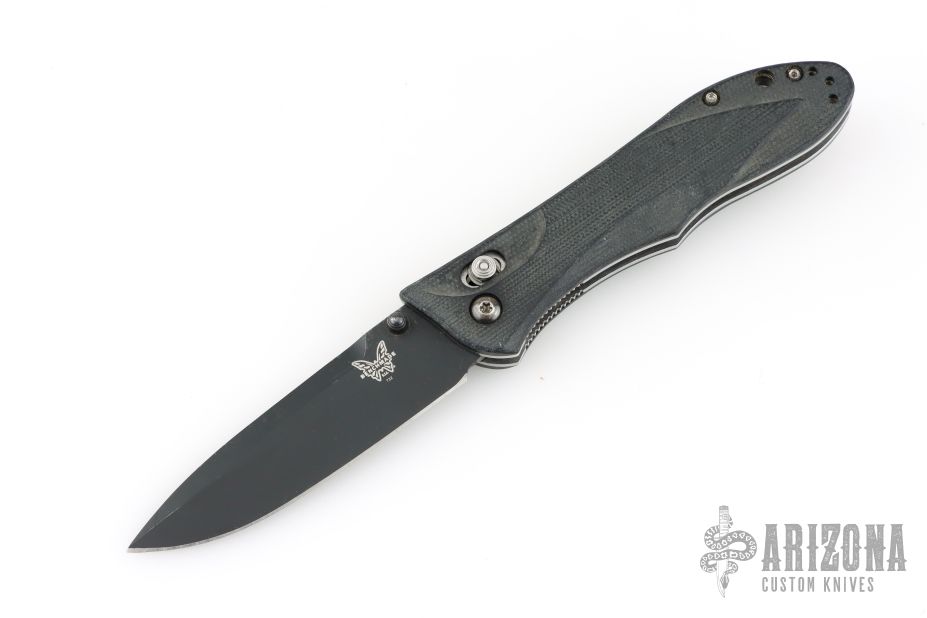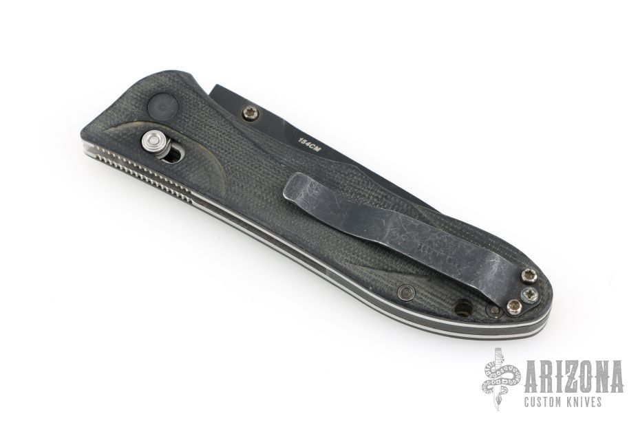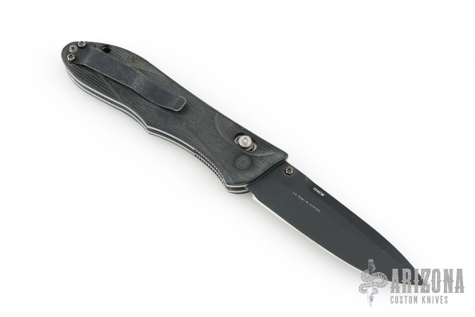 "A reputable design which has more than proven itself as a superior cutting tool. The spear-point blade shape delivers plenty of usable edge, and the AXIS mechanics deliver smooth ambidextrous function every time. The Ares name is of mythical legend and the 732 wears it proudly." BT2 Coated blade. Single thumbstud. Comes in Benchmade drawstring pouch. Has some scuffs and scratches, great overall condition otherwise.
