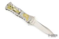 Canadian knife veteran Brian Tighe has spent the last 40 years honing his skills as a quality knife maker, creating award-winning knives that are consistently recognized in the industry for their bold sense of design, impeccable craftsmanship and precision engineering. Brian Tighe specializes in custom folding tactical knives that combine high-tech materials with high-tech styling. Each blade is one-of-a-kind in style featuring original locks and steel designs known for their supreme functionality. All of Brian’s tactical blades are made with top-quality Titanium, Carbon Fiber, Damasteel and other top-quality Stainless Steels. He is currently working with “Glow in the Dark” Carbon Fiber as well as “Glow in the Dark” inlays in various composites. Brian’s knives have been featured in respected publications like BLADE magazine, Knives Illustrated, Tactical Knives and American Handgunner as well as in all four of David Darom’s books “The World of Art Knives”. Brian won “Most Innovative Design” at the 2010 and 2012 BLADE show. Beyond his custom knife work, Brian has worked on production collaborations with Columbia River Knife and Tool (CRKT) and Spyderco Knives. In June 2016, Brian launched his own line and business venture: Brian Tighe & Friends. BT&F specializes in bringing innovative and advanced technology to the mid-tech knife market making affordable, professional-grade folding knives, made in the USA and assembled by hand. In June 2017 at BLADE Show BT&F were awarded “Most Innovated Design” for the Tighe Breaker Integral Automatic the 1st of its kind.