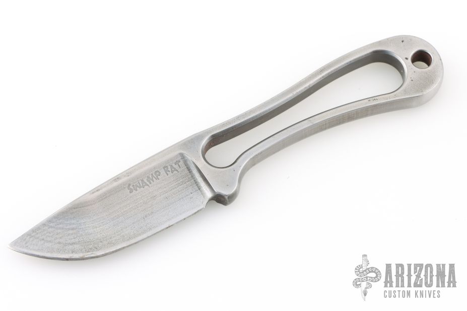 This Mega Swamp Warden by Swamp Rat Knives features a drop point blade with .353" blade stock and 1.068" blade depth, integral construction. The coating on this knife has been removed, has some scratches and spots, otherwise good user condition.