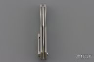 This Jinn slipjoint by Heretic Knives features a hand ground mirror polished wharncliffe blade with fuller nail nick and a false top edge. The handle has two-tone titanium scales with abalone inlays, abalone inlaid pivot, tip up titanium clip, stainless steel spring. Comes with original box, zippered case and COA dated 5/23 and #037. Has a few light scratches. Excellent condition.