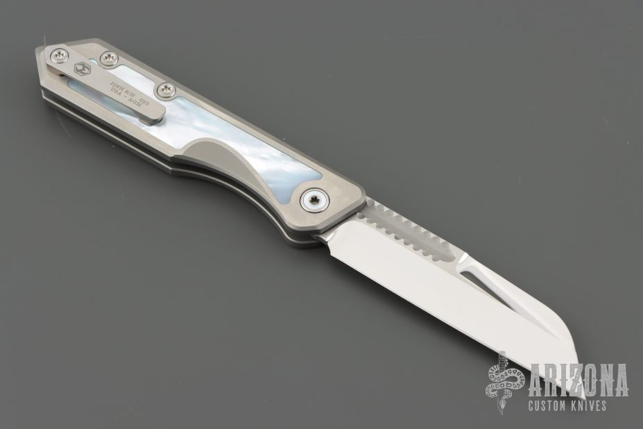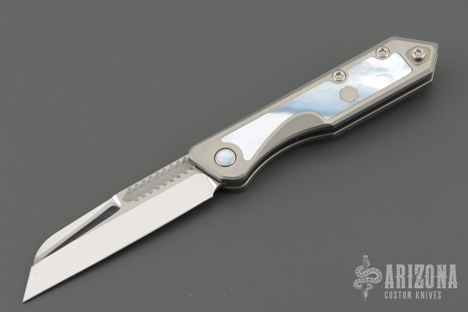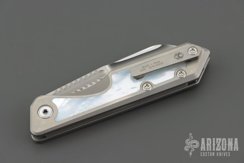 Home Products Custom Jinn - Hand Ground Mirror Polish Elmax Titanium w/ Mother of Pearl Inlays