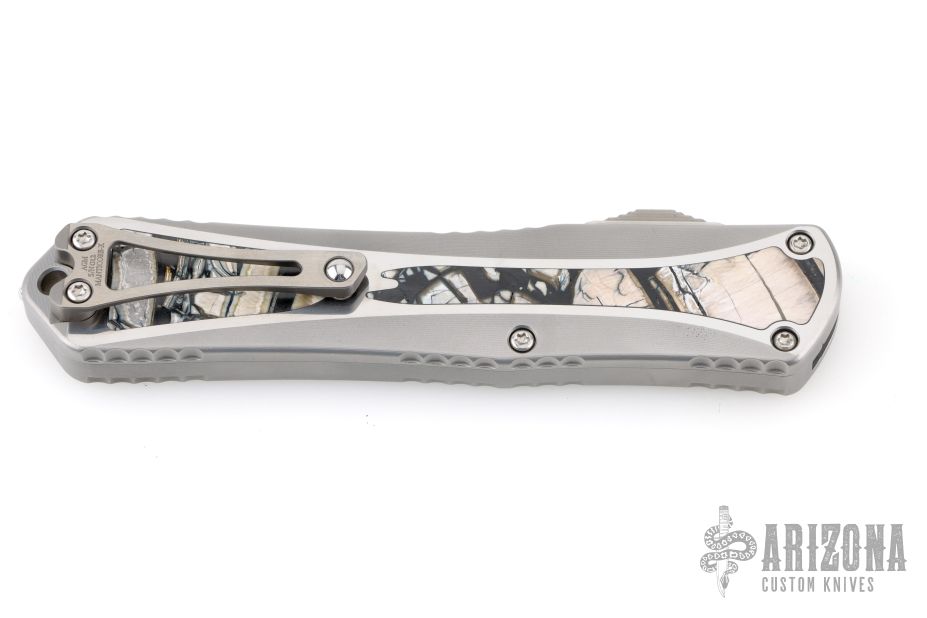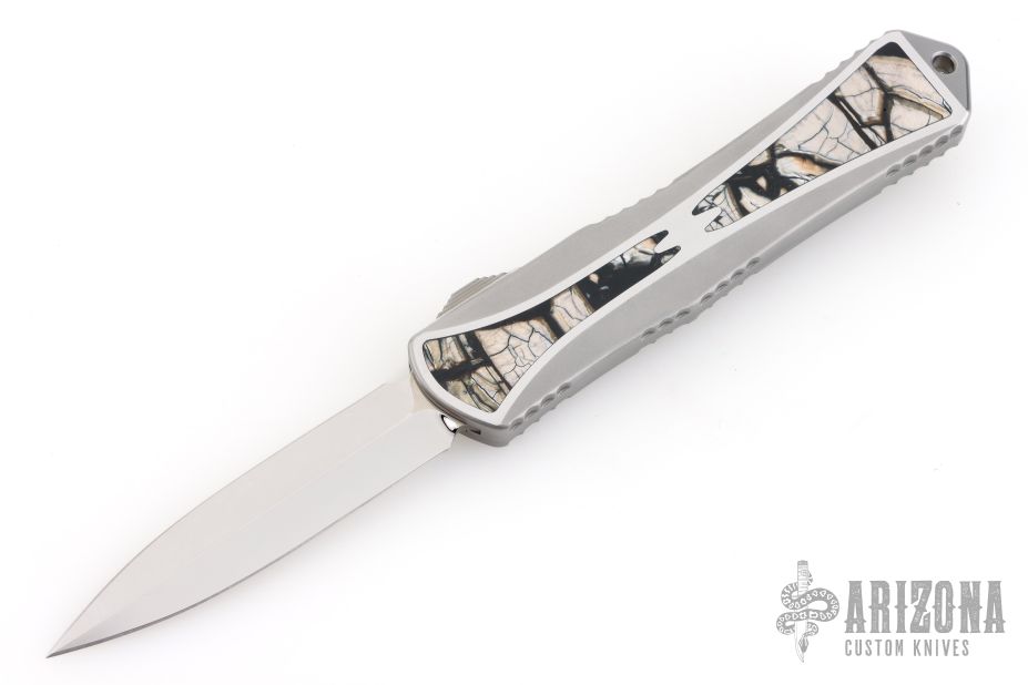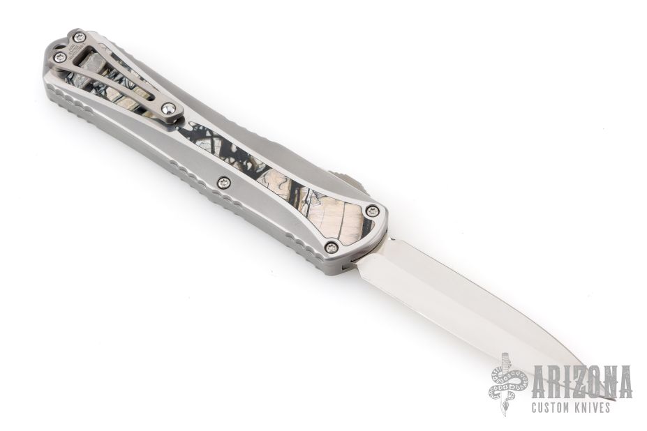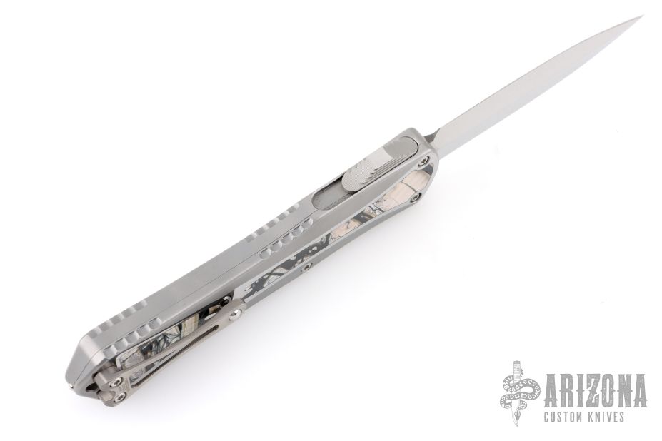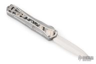This Manticore X by Heretic Knives features a double-edged mirror polished blade with satin flats. The handle has a two-tone stainless steel frame with mirror polished flats and blasted finish otherwise, beautiful seamless mammoth tooth inlays, stainless steel thumb slide and a tip down titanium clip with ball bearing. Comes with original box, zippered case and COA dated 8/20 and s/n 012. Has some light scratches, excellent condition.