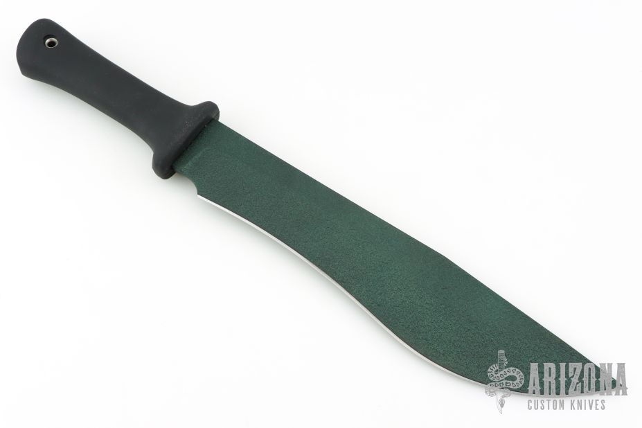 This Choppacabra by Busse features a green coated blade with .218" blade stock and 2.460" blade depth, hidden tang construction. The handle has a black Res C Regulator style grip. New from maker!
