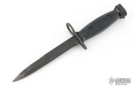 This M7 Bayonet by Colt features a black blade with sharpened top edge, .196" blade stock, and .852" blade depth, hidden tang construction. The handle has checkered plastic handles. Metal ring and pommel. Has some scuffs and scratches, great overall condition.