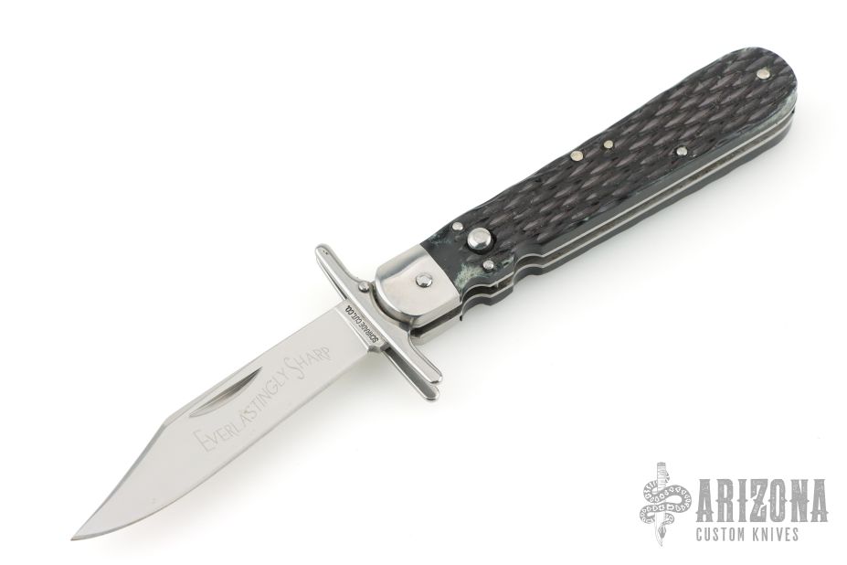 This one has been converted to an automatic knife. Button release and closure.