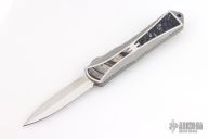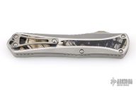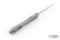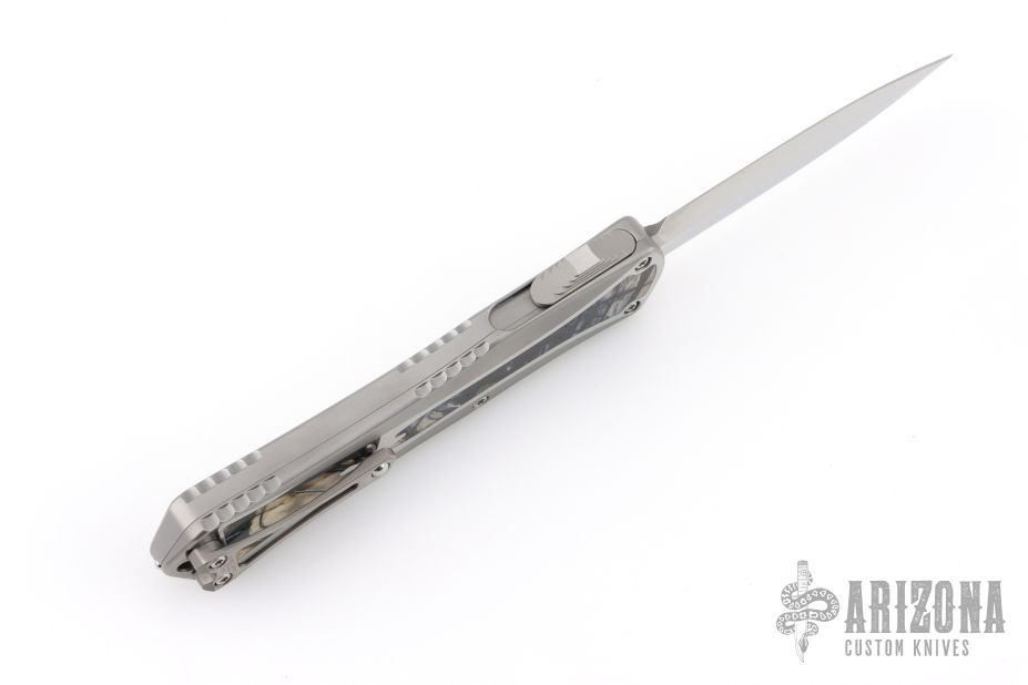 This Manticore X by Heretic Knives features a double-edged mirror polished blade with satin flats. The handle has a two-tone stainless steel frame with mirror polished flats and blasted finish otherwise, beautiful seamless mammoth tooth inlays, stainless steel thumb slide and a tip down titanium clip with ball bearing. S/N 018. Has some light scuffs and scratches, great overall condition.