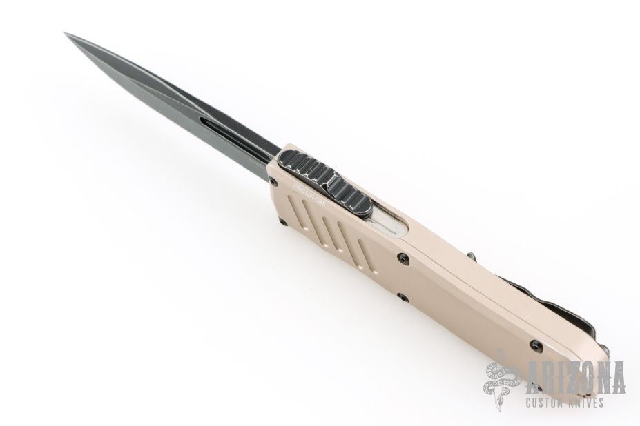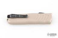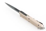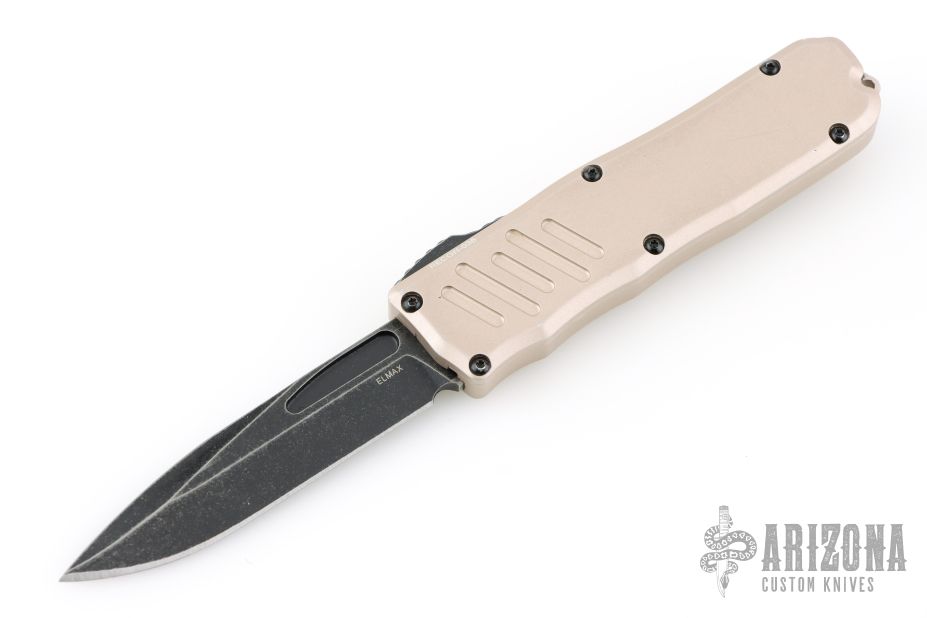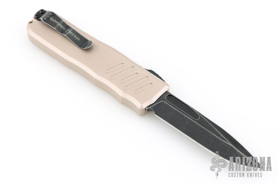 This Recon-035 by Guardian Tactical features a black stonewashed drop point blade.  The handle has a desert tan aluminum frame with black hardware and a black stainless steel pocket clip.  Has some scuffs, has been lightly used, otherwise good condition. Comes with original box and papers.