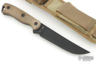 The BK15 Short Becker Tailing Point is modestly sized field knife perfect for belt or pack carry. It's a do it all knife for hunting, camping, and all types of outdoor activities. But it can also be counted on in tactical situations. It comes with two sets of zytel handles, one black and one coyote brown, depending on your preference. The Cordura sheath is very high quality with two retention straps for Airborne units and a storage pouch for survival or sharpening items. This is a lightweight knife with a thin comfortable handle and can be carried all day without issue.