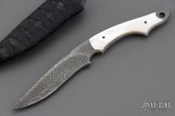 "All my life I have been a maker of many things, a jack-of-all-trades if you will. The idea of making a knife had been with me for a long time. Ever since I was a small boy I have always carried a knife, to me it was an Indispensable tool, never to be without. Later on in years, it was a good friend & hunting partner who finally got me started in knife making, though he was unaware of it. Every time we went hunting he would tell anyone who would listen about his knife, an old Rudy Ruana. The knife I carried at that time was nothing special, so one day after hearing one of his stories for umpteenth time I decided to make a knife of my own. I was going to apply all my crafting skills to this task. Little did I know that what I was plunging into was first going to evolve from a hobby, to an obsession, to something that would become my livelihood. That first knife was made from scavenged materials. A chainsaw bar for the blade, a copper electrode was made into the guard, the handle cut from an old rosewood picture frame. It took months of trial and error to finish that knife, but Upon completion of the first, I felt challenged to make another, but better. This is and always will be my creed. I promise to deliver each knife better than the last. That is the true challenge of what drives me today, to deliver the best I can. So I will go any length to ensure satisfaction and deliver what is truly a hand crafted knife. My choice of materials for my knives are natural and exotic handle materials such as pearl, bone, ivory or fine burlwood combined with a Damascus blade. All my knives are made by stock-removal, free hand ground and hand finished. I do not work off of set patterns, but from a simple drawing. This takes a little more time but it also allows me to be more creative and have full control to make slight changes to each custom knife, obviously as result no two knives are ever identical. My first knife was it was once described by another knife maker as organic in design. My basic designs still reflect that organic flow, graceful curves and a minimum of straight lines. I maintain sole authorship on all my knives with the exception of the Damascus I use and heat-treating of stainless steels. Like many makers I began with fixed blades, as I gained skills I moved into folders, then autos. Lately I have taken to building my folders with all the screws hidden."