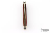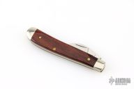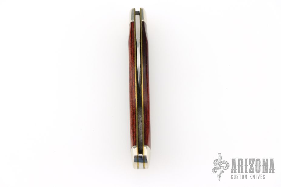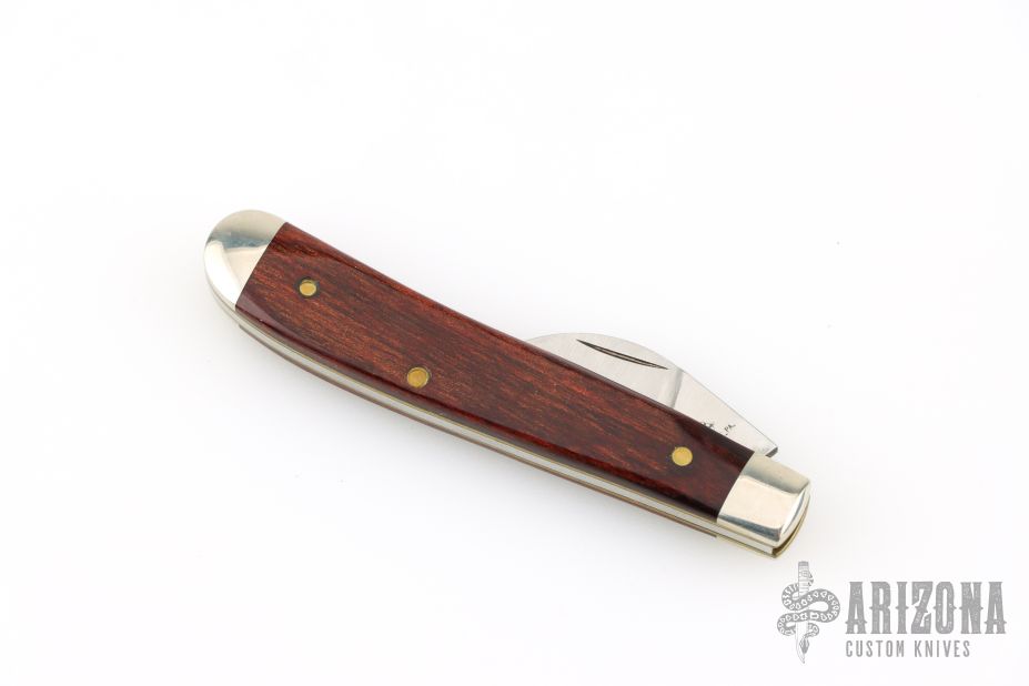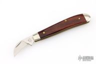 This # 51 Carver features a satin finished blade with nail nick. The handle has wood covers, and nickel silver bolsters over brass liners with a steel backspring. Comes with original box. Has some light scratches, great overall condition.