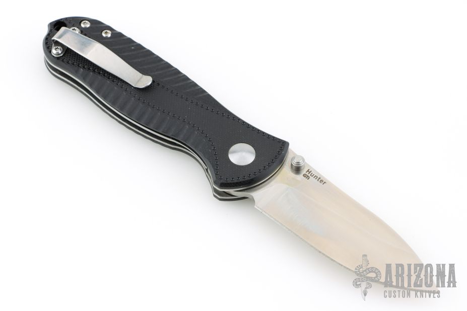 Drawing inspiration from classic hunting blades, the Hunter series are the perfect companions for all of life's tough situations that demand a stout edge. Tested in numerous Virginia hunts, the dynamic design will be indispensable in the quest for wild trophy or inner peace. The handles are made from G10 with a unique textured pattern that is not only great to look at but provides outstanding grip. The blade is crafted from VG10 stainless steel with a satin finish. This knife features a sturdy liner lock, two thumb studs for one-handed opening, a lanyard hole, and a small finger choil for choking up onto the blade. The reversible pocket clip makes this knife completely ambidextrous and perfect for anyone's next everyday carry.
