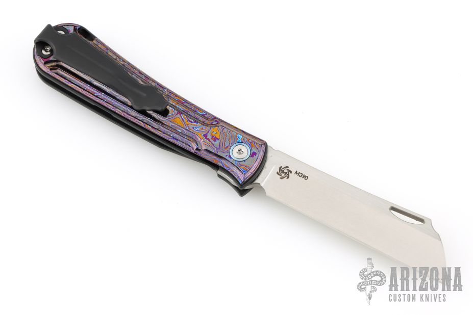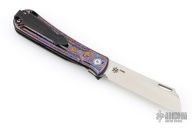 This Caipira Slipjoint by Mechforce is a Rick Lala of Korth Cutlery design. It features a two-tone stonewashed blade with nail nick and notched thumbrest. The handle has ZircuTi scales with black PVD titanium liners, backspacer and tip up clip. Rides on bearings, nice detent, lockup and blade seating. Comes with original box and hard case. New from maker!