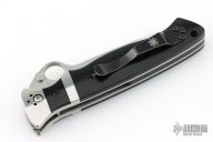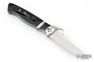 This Vallotton Sub-Hilt by Spyderco features a satin finished blade with a thumbhole, dual thumbstuds, and notched thumbrest. The handle has stainless steel bolsters, black G-10 scales, stainless steel liners, black G-10 backspacer. Nice detent, lockup and blade seating. Comes with original box. Has a couple light scratches, otherwise excellent condition.