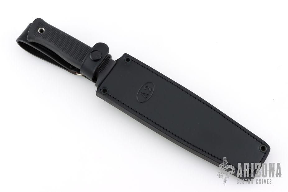 The Model A2 by Fallkniven is a semi-large all-purpose knife for heavy-duty use. The powerful blade is made of extremely hard yet tough laminated VG10 steel and will withstand the stress of hard use. The knife is superb to chop with, but also works very well with daily tasks, thanks to the ergonomic grip. The full tang goes entirely through the handle, so you can strike the end of it without breaking the grip. The sturdy black zytel sheath allows you to fasten the knife on your belt or your pack - even upside down. Model A2 is a water repelling concept which works just as well in extreme cold as in stifling heat. Blade is .233" thick and 1.409" deep.