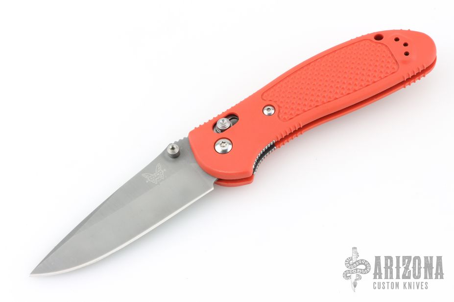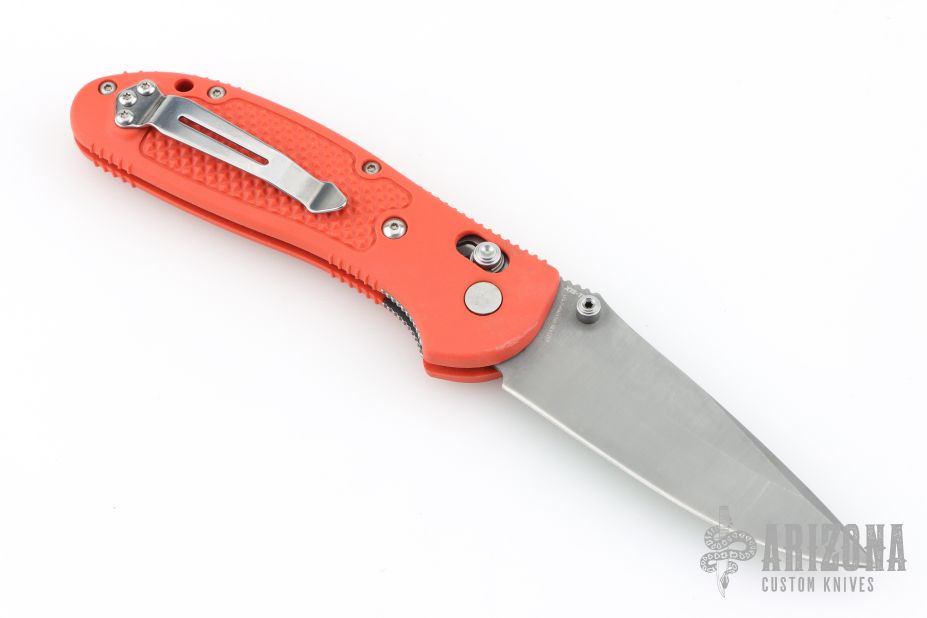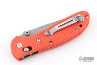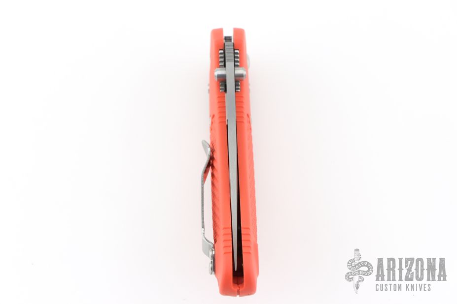 This 551 Griptilians by Benchmade features matte finished drop point blade with dual thumbstuds and notched thumbrest. The handle has orange FRN scales, stainless steel liners, has holes for right or left tip up carry clip. Excellent condition. X15-TN blade steel. Comes with original box and papers.