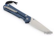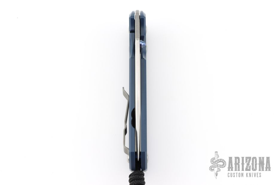 The idea behind the Sebenza has never wavered: to craft the best pocket knife in the world. Premium materials, paired with pristine finishes, and a bank-vault lock-up— all within an incredibly light, precision-made tool. That commitment continues with the new Sebenza 31 with a Ceramic Ball Interface. Like the very first Sebenza, it delivers the same warm “click” and heirloom quality produced from aerospace tolerances. The Sebenza 31 brings finer details to an already fine knife — and another steady, reliable step forward. This one has a stonewash finished tanto blade with single thumbstud. The handle has a glass blasted titanium frame, matching tip up clip. Comes with original box, cloth, lube, tool, papers, and COA dated July 17, 2023. Excellent condition. Modified with a blue Cerakote handle.