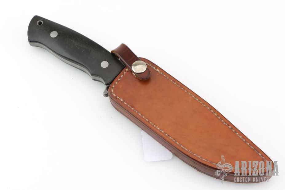 The knife has some scratches and scuffs from use, but it's rock solid and no rust or other major detracting issues otherwise. This thing is a beast of a survival knife. Comes with a zippered case. Comes with a brown leather sheath by Armoral Leather. It is not original to the knife, but fits nicely.