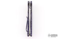 This Eklipse by Rick Hinderer features a stonewash finished blade with notched thumbrest and flipper. The handle has a stonewashed/anodized titanium frame, satin hardware, and a tip up or down reversible stonewashed and anodized titanium clip and filler tab, lanyard hole at the butt. Comes with original box and papers. Excellent condition.