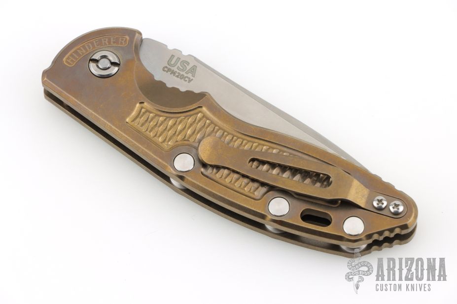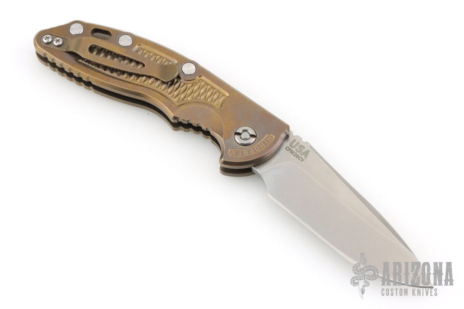 This XM-18 Flipper by Rick Hinderer Knives features a 3.5" stonewashed finish blade, notched thumbrest and flipper.  The handle has a stonewashed and anodized titanium frame with a matching tip up pocket clip. Comes with original box and papers. Excellent condition.