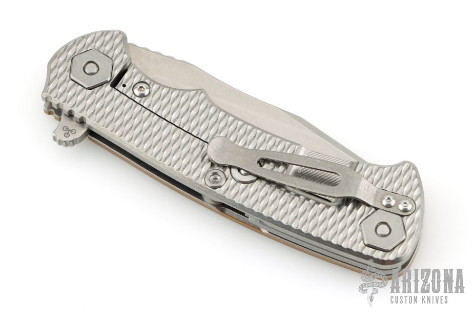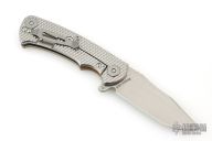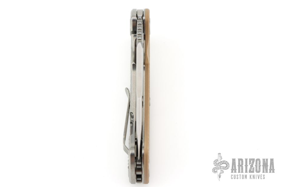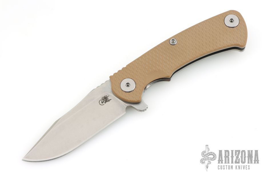 This Project X Flipper by Rick Hinderer Knives features a stonewashed blade, notched thumbrest and flipper, dual thumbstuds. The handle has a Coyote G-10 scale, and stonewash finished titanium frame with matching clip. Nice lockup, seating, and detent. Comes with original box and extra washers. Excellent condition.