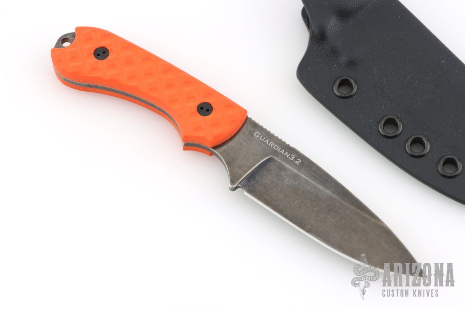 This Guardian3.2 model has a swedge style blade with a Nimbus finish (black/stonewash) and orange G-10 scales.