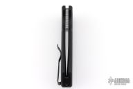 The Short Bladed Rockeye, or SBR for short, is a compact version of the outstanding full sized Rockeye Auto. Both knives are designed by Marine Corps knife designer Les George, who’s ergonomic hard use knives have been faithfully translated to automatic versions by Pro-Tech. The SBR features a compact design, with a 2.5″ blade that’s built for a multitude of cutting tasks. A pocket milled spine adds extra grip and depth to the design. The SBR features solid black hard coat anodized handles with grip textured milling, blasted hardware, black DLC coated deep carry clip, and a stonewashed blade. Includes the original box and papers. New condition.