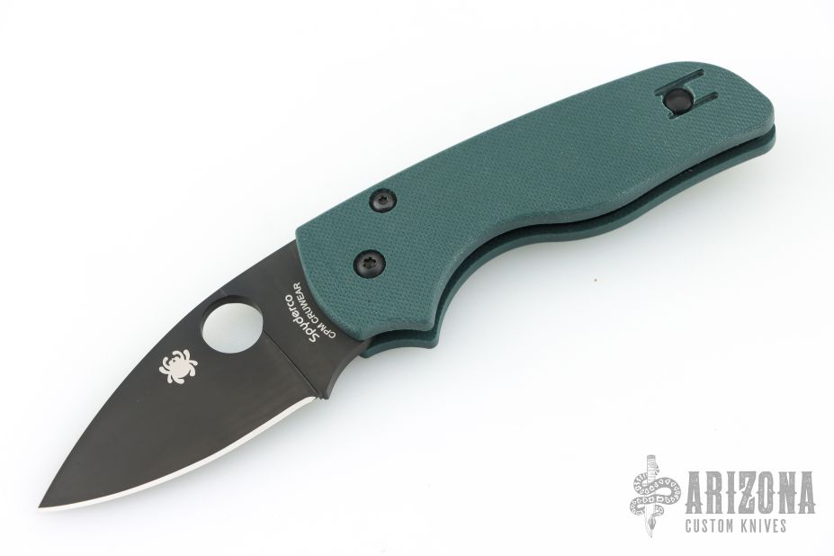 Here is The Knife Joker Exclusive Spyderco Lil’ Native. The wonderful combination of dark green g-10 and a DLC CPM-CRUWEAR blade makes this Lil’ Native unique. This version of the Lil’ Native features the Sal Glesser designed compression lock for easy use and solid lockup. The pocket clip on this knife is a DLC deep carry wire clip. Both liners and the lock bar are also DLC. The blade is a 2.5″ DLC CPM-CRUWEAR full-flat ground blade. The handle scales are made from dark green g-10. Exclusive to The Knife Joker, whether carrying or collecting, this Spyderco Lil’ Native is ready to impress!