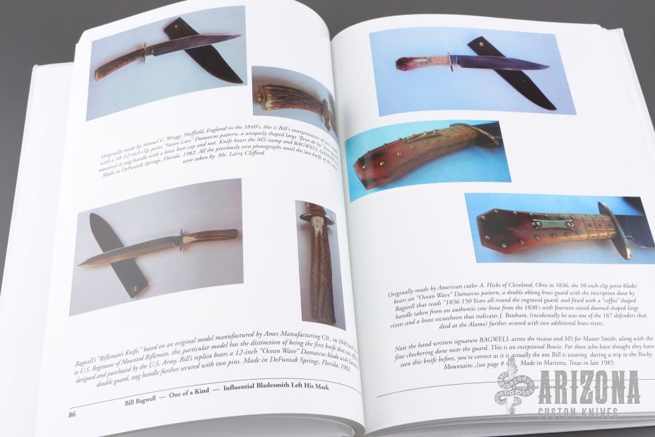 Bill Bagwell had always been fascinated by knives. He made his first knife at the age of 10 from an old saw. While he was in high school he began to forge knives in the industrial arts shop, and by the time he was 15 he was forging hunting and Bowie knives as a hobby. He made and sold knives while he was in college and became a full-time professional bladesmith in 1969. Bagwell is one of the true pioneers in the making of Damascus blades in the United States. He completed his first successful Damascus blade on December 1, 1973, after about six months of trial and failure. In early 1976, with the late Don Hastings, B.R. Hughes and Bill Moran, Bagwell became one of the founding members of the American Bladesmith Society and wrote the original charter for that organization. He also served as the society's first secretary and was on its first board of directors. Bill passed away in 2021.