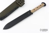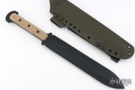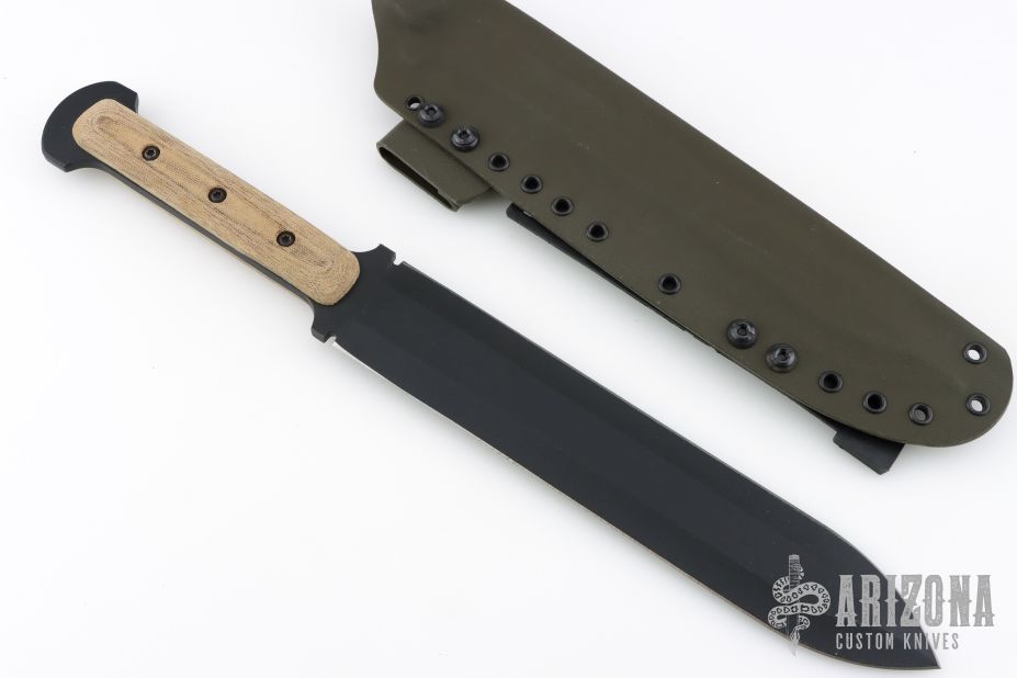 This Short Gladius Sword by Shadowtech features a black double edged 8670 Steel blade with .225" Blade Stock, 2.033" Blade Depth, full tang construction. The handle has natural canvas micarta scales. Includes a kydex sheath with belt loop. Excellent condition.