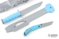 The Ka-Bar Corser Folder is a lockback pocket knife sporting a bright blue GFN-PA66 hard plastic handle. The tanto blade has a gray powder coated finish and is made out of AUS-8A stainless steel. The handle has what seems to be a stippled texture that permits a strong grip. Opening and closing this blade is effortlessly done by the dual thumb studs and lockback mechanism. Get ready to lift off with this blade made easy to carry with its reversible pocket clip.