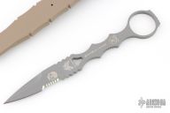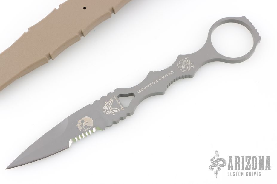 The Benchmade 176 SOCP Dagger is a Greg Thompson design. He is the creator of the Special Operations Combatives Program (SOCP) and has years of training and experience to draw from. This skeletonized dagger has a finger loop that makes it easy to deploy and use in quick order. It is made from 440C stainless steel with a grey finish. The 178 SOCP includes a black sheath with clip.