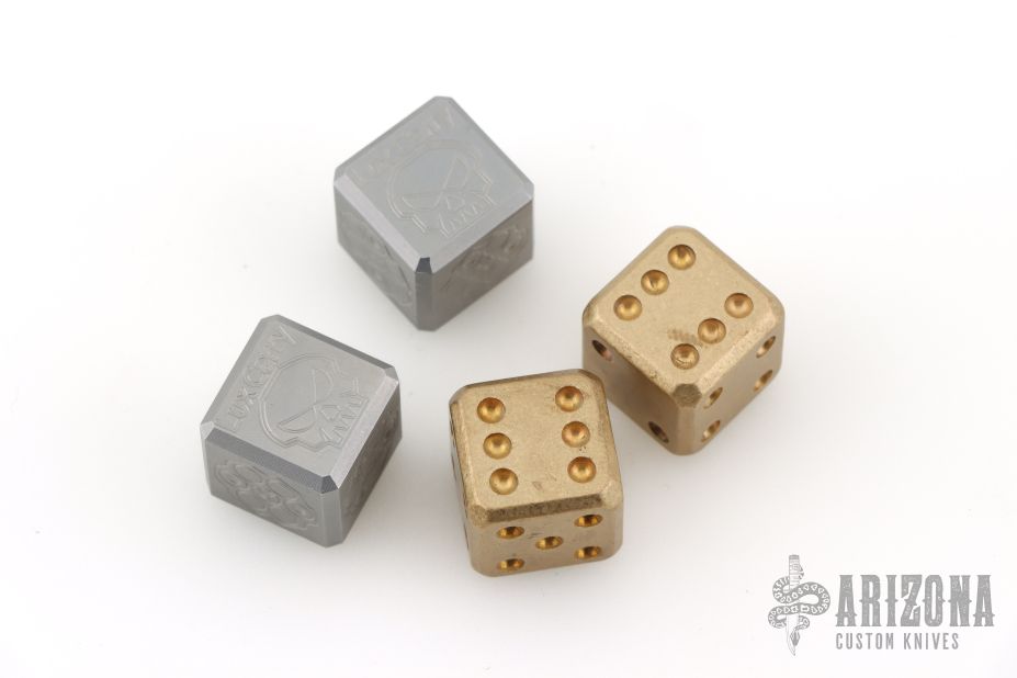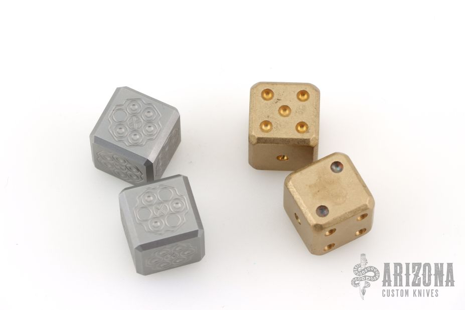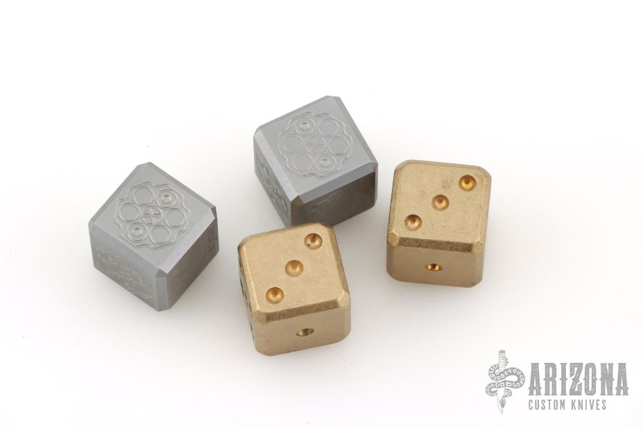 Listing also includes a set of brass dice. Has some light scuffs/scratches, great overall shape.