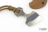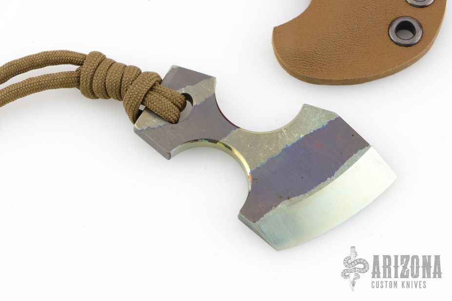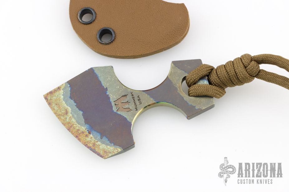 Designed to be a small cutting tool or a backup defensive weapon that is easily carried anywhere, this spunk from Mummert Knives delivers an amazing amount of cutting ability in a small package. The Spunk is constructed out of .195” thick 6Al-4V titanium with tungsten carbide fused to the edge attaining a rockwell hardness of 72 at the razor sharp edge. Stripe anodized finish. Comes with a custom Kydex sheath. Excellent condition.