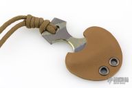 All of our knives are hand made by myself in a very small shop along with my wife Nadine, who does most of our sheath work, in Vista, California. We source all of our materials from U.S. dealers, and use local businesses for our cutting and engraving jobs. My design emphasis is one based on ergonomics first. I believe a good knife should function as an extension of the users hand and, as such, should be both comfortable and secure in the grip. All of my designs start from the handle and grow from there. Most of our tactical knife designs are hollow ground on the primary edge, with a convex ground tip. This gives the user both the fine cutting edge afforded by a hollow grind, with the durability and piercing power of a much more robust tip. Our tomahawks and axes both have convex ground primary edges for increased durability during impact strikes. Due to our close proximity to the ocean here in San Diego County, We focus on using materials that can withstand highly corrosive environments such as salt water. Composite handle materials such as carbon fiber, G-10, and Canvas Micarta are used for most tactical knife handles, and all-titanium hardware on our fixed blade tactical knives, hawks, and axes. All of our tactical knives, hawks, and axes are produced in 6Al-4V Titanium with tungsten carbide bonded edges. Our Tactical knives are also offered in high grade steels such as CPM S30V, CPM 20CV, and CPM 154, while most of our kitchen cutlery is done in AEB-L – a very high grade of stainless steel originally developed for razor blades. For questions, comments, or customer service, you can reach us at [email protected] or 619-228-9300.