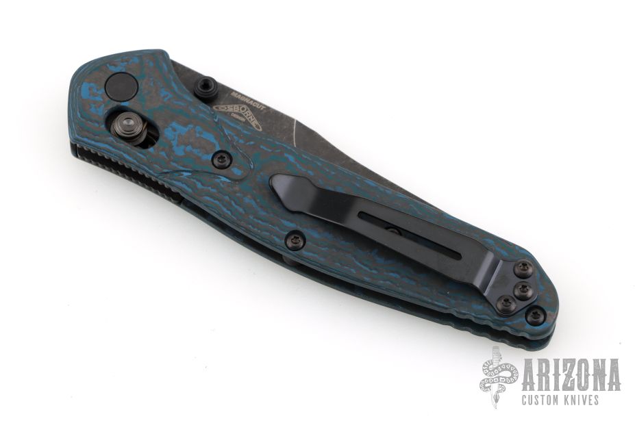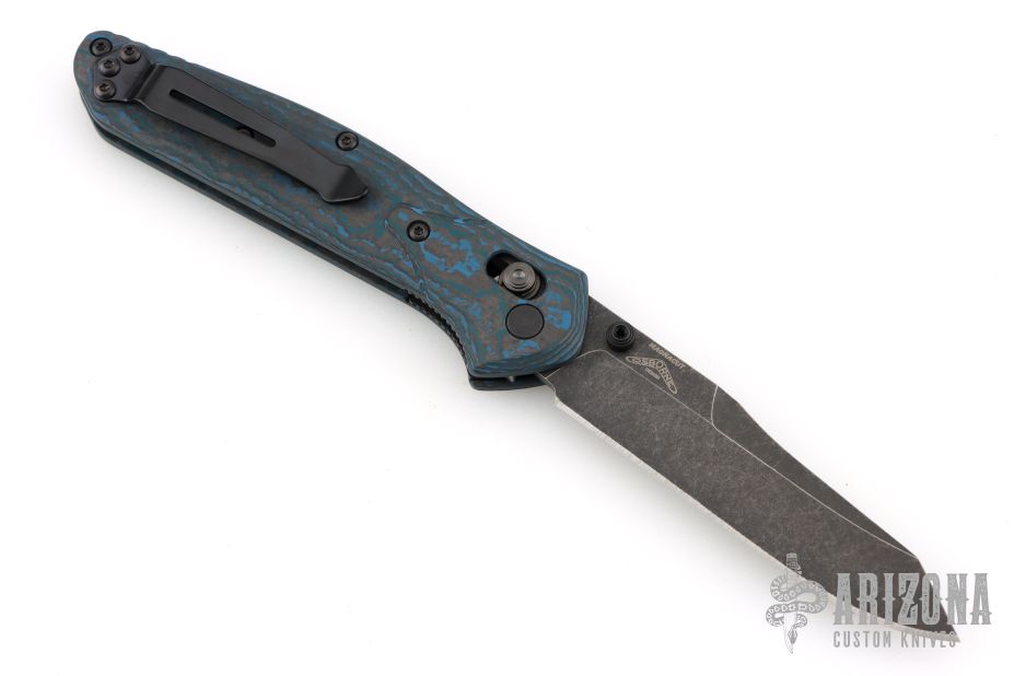 Warren Osborne designed the Benchmade 940 Osborne knife popular for good reason. It's a comfortable everyday carry knife with its slim design, great ergonomics and lightweight. The 940BK-2404 has a premium CPM MagnaCut steel blade with a plain edge and a Battlewash DLC finish. The Arctic Storm Fatcarbon handle has stainless steel liners and black anodized aluminum barrel spacers. The AXIS lock and reversible pocket clip make this Benchmade knife usable for righties and lefties alike.