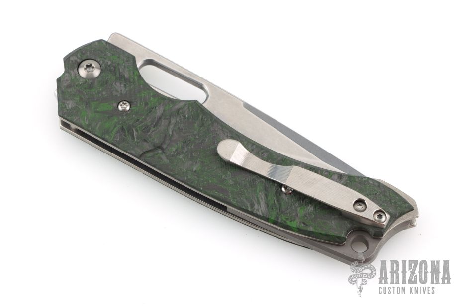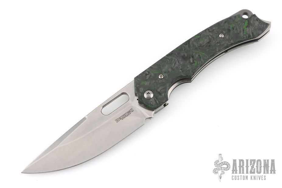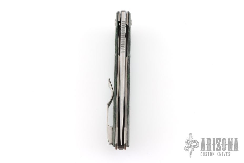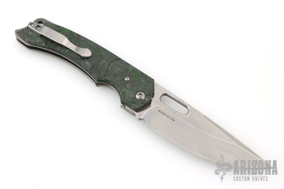 This Midtech Navajo Folder from Dervish Knives features a stonewashed drop point blade with a notched thumbrest.  The handle Fat Carbon scales over titanium liners with a matching tip up pocket clip and backspacer.  Includes maker's padded zippered case and COA dated 2024. Excellent Condition.