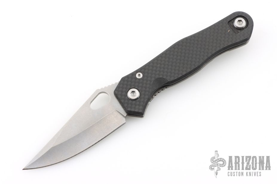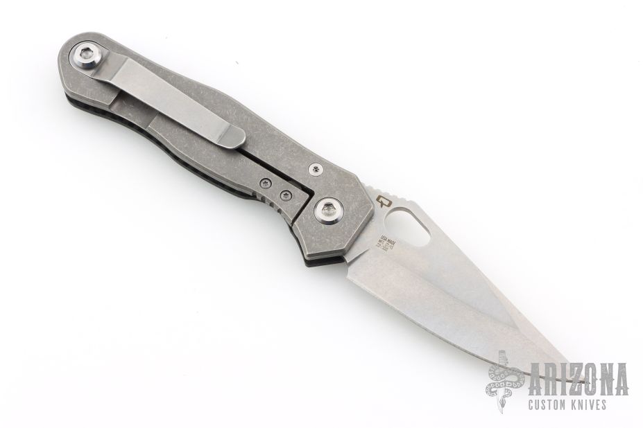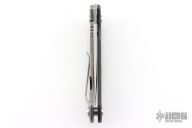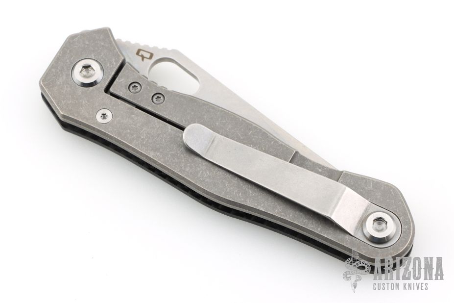 The Quartermaster Roper XL has a tumble finished blade with notched thumbrest and thumbhole. The handle has a carbon fiber and tumbled titanium frame with a tip up tumbled stainless steel clip. Rides on bearings. Nice detent, lockup and blades seating. #221 of 300 and dated 07/15. Comes with original box and card dated 2-22-18. Excellent condition.