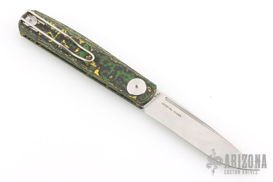 This model of the Compact Gslip is a Blade HQ exclusive with green and yellow toxic carbon fiber handles and a satin blade!