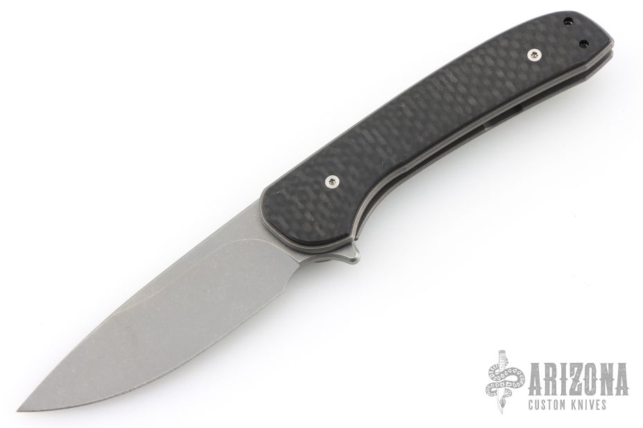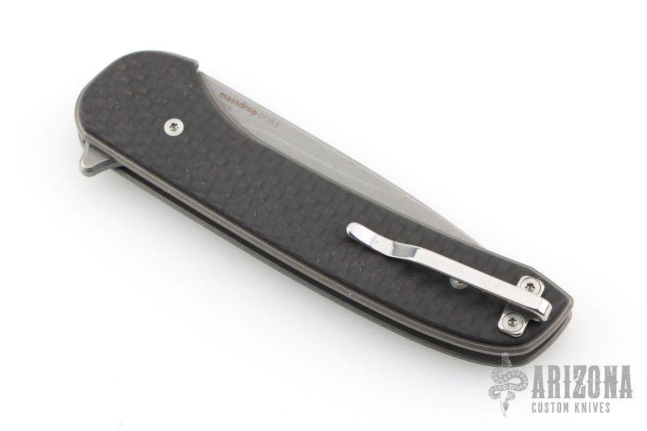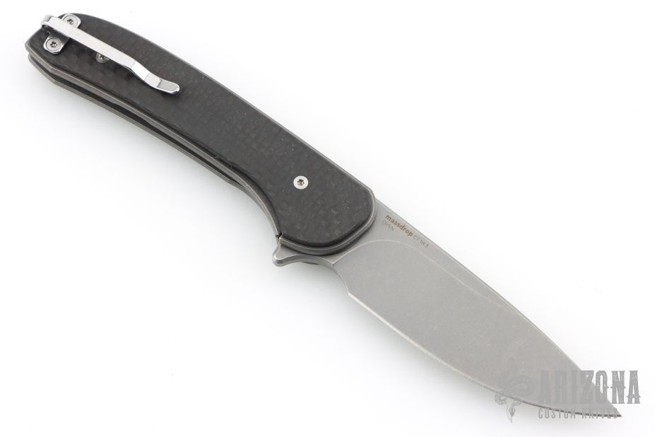 This Gent by Massdrop is a Ferrum Forge design. It features an acid wash and tumble finished blade with flipper. The handle has carbon fiber scales, tumbled titanium liners and tip up clip. Nice detent, lockup and blade seating. Comes with original box, zipper case, and papers. Excellent condition.