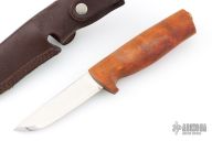 Fossekallen is extremely suitable for small to medium hands due to its shape, and is often used by our youth audience. The blade is made of the classic triple laminated stainless steel so often used in Helle knives. Sharpened with a classic scandi grind and polished by hand to an out-of-the-box razor sharp edge.