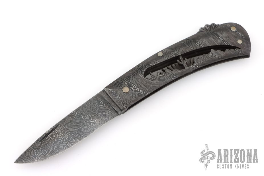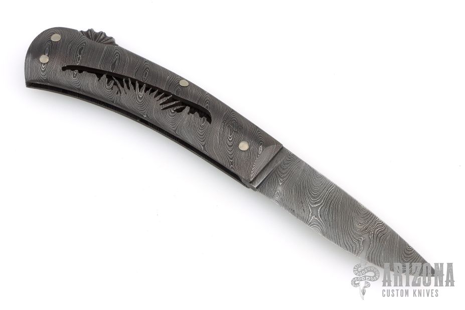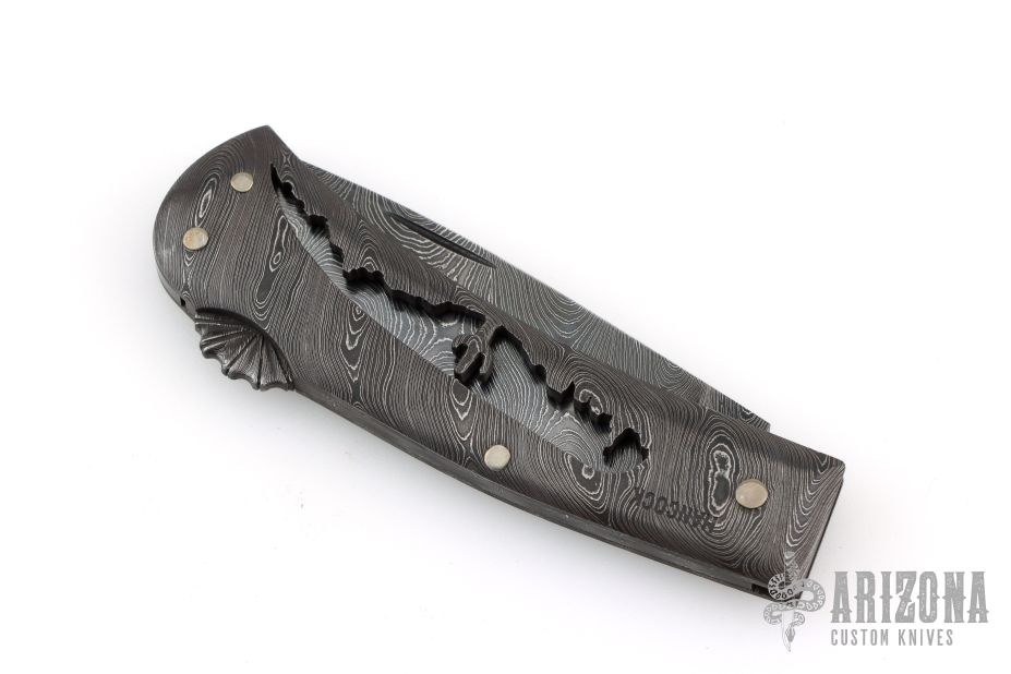 Damascus Lockback Folder - Pierced Desert Scene