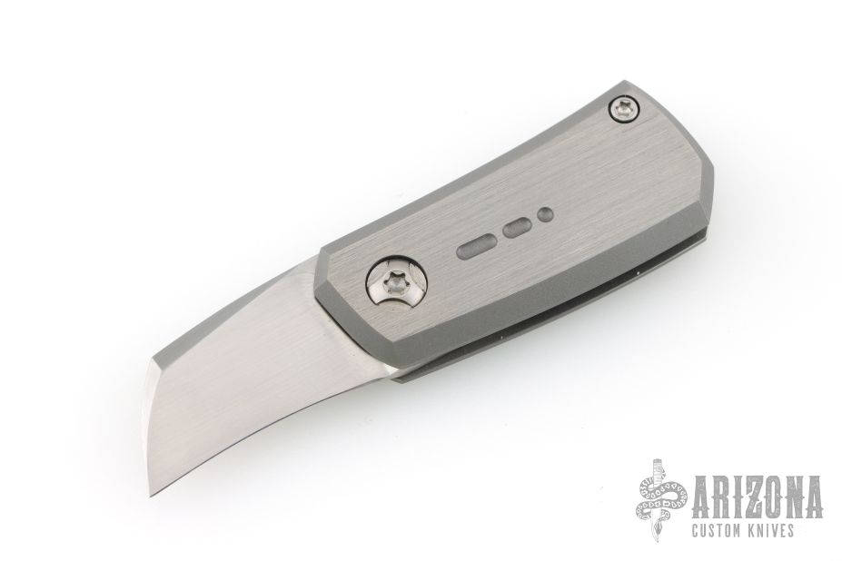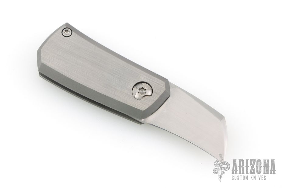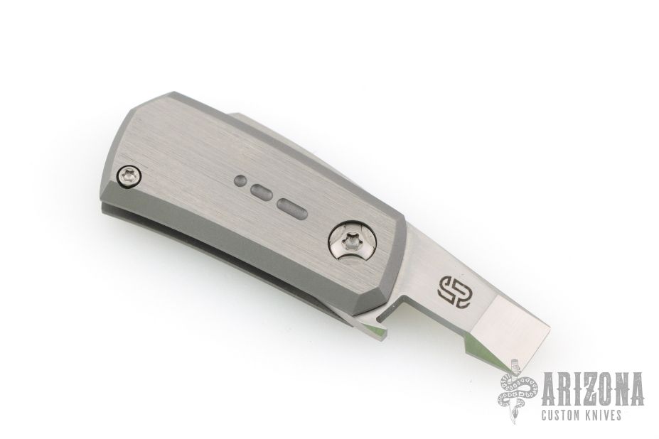 This Tengu Tool friction folder from Jared Oeser features a hand rubbed satin finished tanto blade with bottle opener and pry tool. The handle is comprised of two-tone finished bead blasted titanium with decorative fuller on the show side. Comes in a soft pouch. Excellent condition.