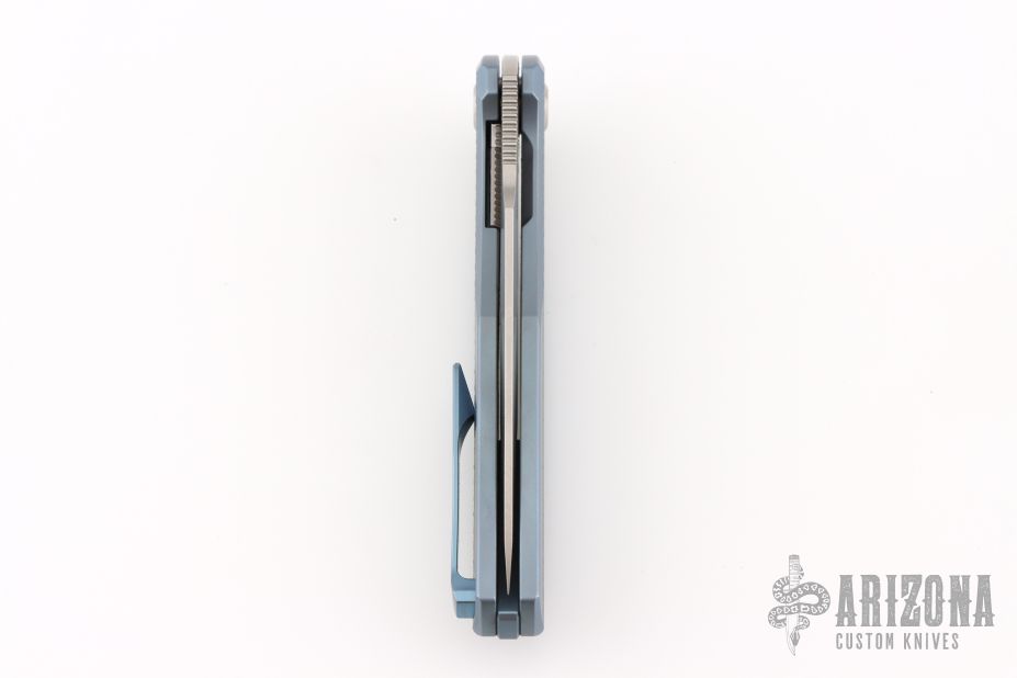 The Reyne design is one that embodies everything I enjoy about knives. Purposefully designed mechanics, aesthetic elements that compliment the overall shape, custom textured handles, aggressive yet elegant lines, crisp and smooth action. It comes equipped with a 3.57” long Magnacut blade, thick and intricately milled titanium handles, an inset titanium lock bar with steel insert, custom machined pocket clip and backspacer, deep internal milling, and more. The Reyne is not a design that is just slapped together and put on the market. It is the culmination of life long passion and commitment to create the best product I can.