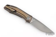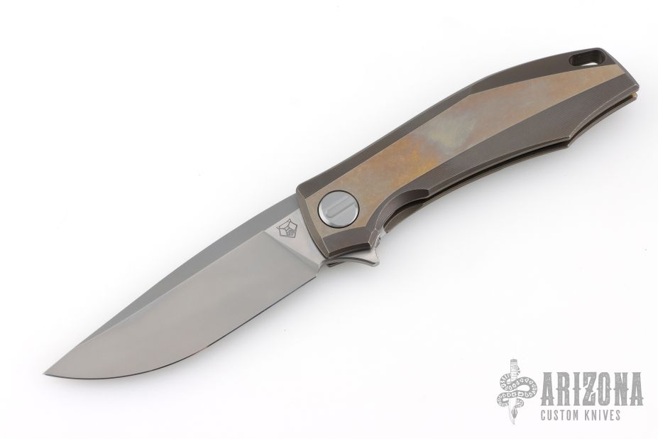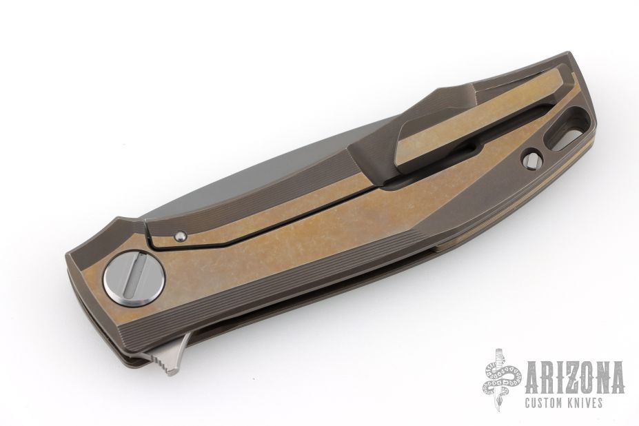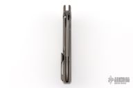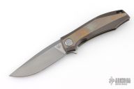 This RKMP by Shirogorov Knives is a Charles Marlowe design. It features a bead blast finished blade with, hand satin flats and flipper tab. The handle has a tumbled and anodized milled titanium frame with two-tone anodized pin stripe titanium backspacer and bead blast finished tip up clip. Nice detent, lockup and blade seating. Has MRBS. Comes with original box, cloth, and COA. Excellent condition. #146/150